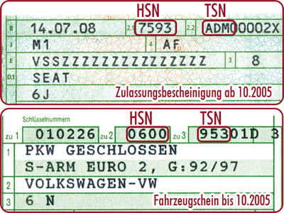 HSN & TSN auf Ihrem Fahrzeugschein.